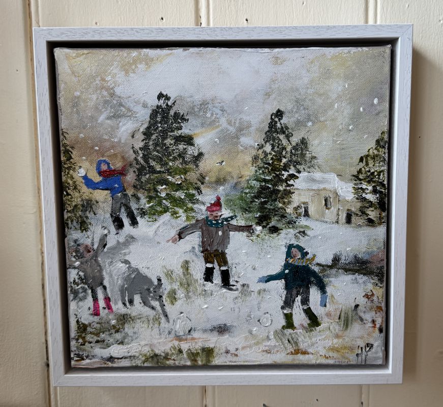 Original artwork acrylic on box canvas framed in a deep white box tray frame